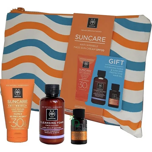 Apivita Suncare Anti-Wrinkle Face Cream SPF30 50ml & ΔΩΡΟ Cleansing Foam 75ml & Suncare Hair Oil 20ml